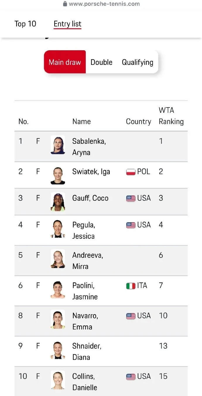 2025 年 4 月 8 日,WTA 斯图加特站官方公布参赛名单调整信息,世界排名第八的中国选手郑钦文因右肘伤势确认退赛。